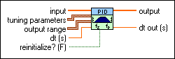 output returns the control output of the PID algorithm that is applied to the controlled process. This VI determines the length of the output from the size of the input array. | ||||||