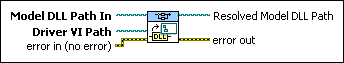 This VI resolves the path for the Model DLL you specify using Model DLL Path In. If the model is running on RT or you provide an absolute path to the Model DLL, this VI does not modify the path. If the model is running on a Windows system and you provide a relative path to the Model DLL, this VI qualifies that path using the directory of the Driver VI. If a client deploys this model and the model is running on RT, the client copies the Model DLL to the ni-rt\system folder on the RT target. That folder is in the default search path for shared libraries, so an absolute path is not necessary.