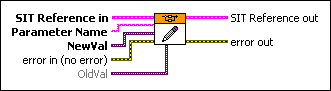 OldVal specifies the previous value of Parameter Name. If the simulation is running on an RT target and Parameter Name is nonscalar, the SIT Server updates only the changed elements of Parameter Name. Wiring a value to OldVal helps ensure that the current task completes within the task deadline, because the SIT Server updates only the necessary element of Parameter Name. If you do not specify a value for OldVal, the SIT Server updates every element of Parameter Name. OldVal has no effect on a non-RT simulation. | ||||||||||||