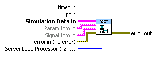 Manages the communication between the model and the Host VI. This VI handles requests from the Host VI to start and stop the model as well as to set parameters and probe signals. This VI does not return data until you stop the model or a communication error occurs.