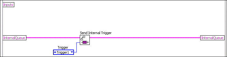 Tip You can obtain a list of valid triggers by right-clicking the Trigger input and selecting either Create»Control or Create»Constant from the shortcut menu. - Wire the Internal Queue Out output terminal to the InternalQueue cluster element on the right side of the block diagram.
