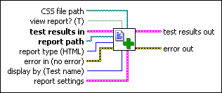 CSS file path specifies the path to the Cascading Style Sheet (CSS) file this VI uses to customize HTML reports. | ||||||||||||||||