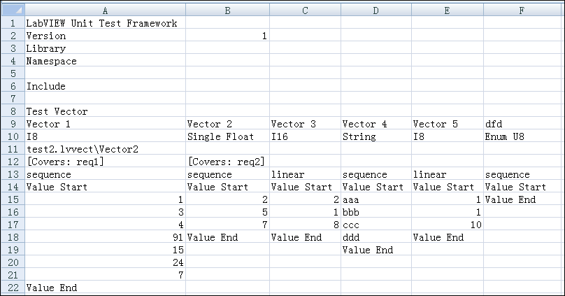 7 and Greater Values Specifies values of this test vector. <Blank> Each row between the Value Start row and the Value End row indicates a test vector value.