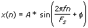 are the amplitude, frequency, and phase of the tone signal, respectively, and Fs is the sample rate in samples per second of the input waveform signal.