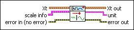 Converts the unit of a univariate or multivariate (vector) time series from volts to an engineering unit (EU). Wire data to the Xt input to determine the polymorphic instance to use or manually select the instance.