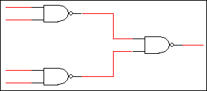 One convenient way of doing so is to create a module for the NAND gate and instantiate it three times, as shown below. Note that because we need to create internal nodes, we must use the /wires command.