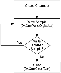 To increase performance, especially when multiple samples are written, include the Start function/VI and Stop function/VI in your application. In the preceding flowchart, the Start function/VI would come just before you write samples, and Stop would come just before you clear the task.
