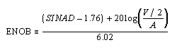 Effective number of bits (ENOB) is another way of specifying signal-to-noise and distortion ratio (SINAD). ENOB is calculated using the following formula.