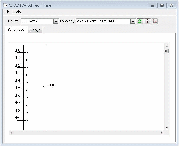 Click the end of the pole associated with the channel (left) you want to connect to the com channel (right). The NI-SWITCH SFP makes the appropriate connect/disconnect calls to the driver.