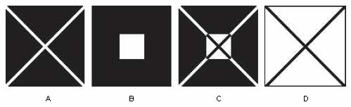 Pixels in the source image are processed if corresponding pixels in the image mask have values other than zero. The following figure shows how a mask affects the output of the function that inverts the pixel values in an image. Figure A shows the inspection image. Figure B shows the image mask. Pixels in the mask with zero values are represented in black, and pixels with nonzero values are represented in white. Figure C shows the inverse of the inspection image using the image mask. Figure D shows the inverse of the inspection image without the image mask.