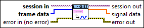frame data provides the array of bytes, representing frames to transmit. The raw bytes encode one or more frames using the Raw Frame Format. This frame format is the same for read and write of raw data and also is used for log file examples. For information about which elements of the raw frame are applicable, refer to the XNET Convert VI instance for the protocol in use (the XNET Convert (Frame CAN to Signal) VI, XNET Convert (Frame FlexRay to Signal) VI, or XNET Convert (Frame LIN to Signal) VI). For an example of how this data applies, refer to Conversion Mode. |