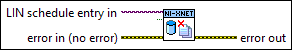 This VI closes a LIN schedule entry object from a database (or all database objects). It is an instance of the XNET Database Close poly VI.