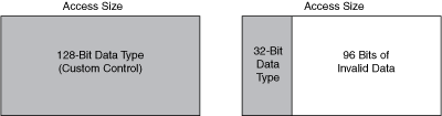 If you use a data type that is smaller than the access size, the remaining bits receive an unknown and invalid value, but still get written and take up both space and bandwidth. For example, if the access size is 128 bits wide and a 32-bit data type is chosen during configuration of the DRAM, there will be 96 bits of unknown and invalid data.