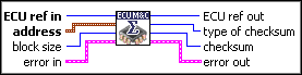 MC Build Checksum.vi is used to calculate the checksum of the specified memory block inside the ECU starting at the selected Memory Transfer Address. The checksum algorithm is not specified by CCP and the checksum algorithm may be different on different devices.