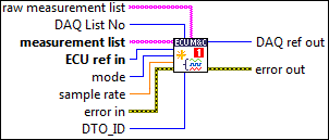 DAQ List No specifies which DAQ list entry number should be used for the defined Measurement channel list for the selected ECU. To query the available DAQ List numbers on the ECU use and select DAQ List Number in the Poly VI. | ||||||