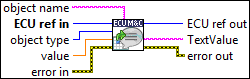 ECU ref in is the task reference that links to the selected ECU. This reference is originally returned from MC ECU Open.vi or MC ECU Select.vi, and then wired through subsequent VIs. | ||||||