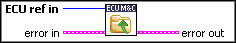 ECU ref in is the task reference which links to the selected ECU. This reference is originally returned from MC ECU Open.vi or MC ECU Select.vi, and then wired through subsequent VIs. | ||||||