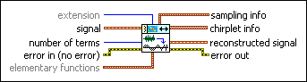 Decomposes signal as a linear combination of Gaussian chirplet elementary functions. Wire data to the signal input to determine the polymorphic instance to use or manually select the instance.