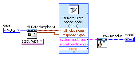 - Add the SI Estimate State-Space Model VI to the block diagram of the VI you created.