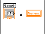 Une référence de variable locale ou globale du diagramme n'est connectée à rien. Cela peut provoquer un comportement incorrect du VI. Dans l'exemple suivant, une variable locale n'est pas câblée.