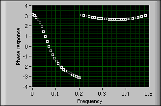 Vous pouvez appliquer le VI Dérouler une phase à la réponse en phase calculée pour un système sans variable temporelle linéaire. La réponse en phase est définie comme l'angle complexe de la réponse en fréquence d'un système. Vous calculez la réponse en phase en angles compris entre [–pi, pi] ou, autrement dit, en angles dans un cercle de 2*pi radians. Comme les multiples de 2*pi sont enroulés lorsque vous calculez la réponse en phase, il y a souvent des discontinuités dans la réponse en phase entre deux intervalles de fréquence adjacents.