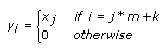 Si Y représente la séquence Tableau suréchantillonné en sortie, le VI Suréchantillonnage obtient les éléments de la séquence Y avec la formule suivante :