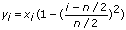 Si y représente la séquence X fenêtré en sortie, le VI Fenêtre de Welch obtient les éléments de y en utilisant la formule suivante.