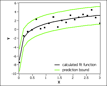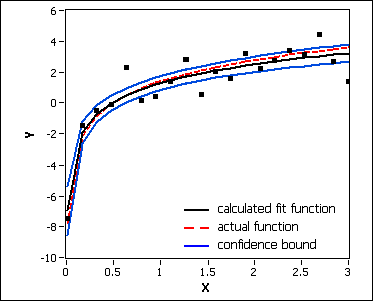 Calcule des intervalles statistiques du meilleur ajustement logarithmique d'un ensemble de données (X, Y). Vous devez sélectionner manuellement l'instance polymorphe à utiliser.