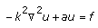 où k et a sont des coefficients constants, u est la fonction inconnue, et f le membre de droite de l'équation. L'opérateur