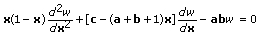 La fonction hypergéométrique de Gauss F(x, a, b, c) est une solution de l'équation différentielle suivante :