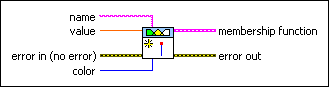 couleur spécifie la couleur de la fonction d'appartenance lorsque vous la visualisez dans le Créateur de systèmes flous. Vous pouvez câbler une constante boîte de couleur à cette entrée. |
