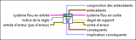 système flou en sortie renvoie l'ensemble des informations pour un système flou. Câblez cette sortie à l'entrée système flou en entrée d'un autre VI. | ||||||||