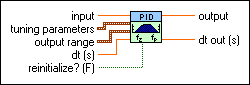 dt (s) spécifie la durée du cycle de boucle, ou intervalle en secondes, à laquelle ce VI est appelé. Si dt (s) est inférieur ou égal à zéro, ce VI calcule la durée depuis qu'il a été appelé pour la dernière fois, en utilisant un timer interne ayant une résolution de 1 ms. Si dt (s) doit être inférieur à 1 ms, spécifiez la valeur explicitement. La valeur par défaut est -1. | ||||||