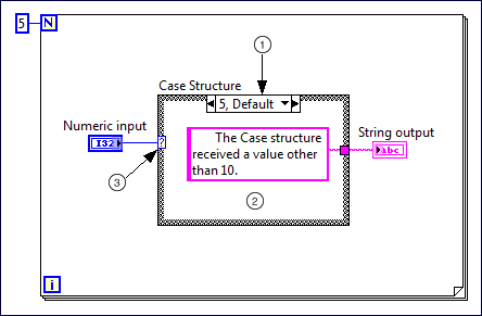 Contient un ou plusieurs sous-diagrammes (les "conditions"), dont un et un seul s'exécute quand la structure s'exécute. La valeur câblée au sélecteur de condition détermine la condition à exécuter.