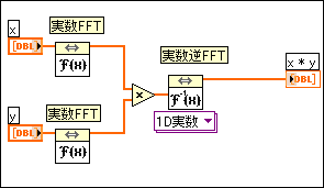 したがって、このVIは線形コンボリューションでなく巡回コンボリューションを計算します。しかし、 x(t) * y(t)NX(f)Y(f) はフーリエ変換の組で、 x(t) * y(t)Nx(t) と y(t) の循環畳み込みなので、畳み込みの循環バージョンを作ることができる。巡回コンボリューションの計算には、以下の図のようなブロックダイアグラムを使用できます。