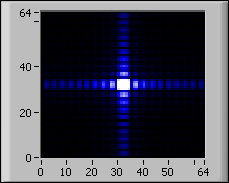 2D信号では、FFT VIは入力行列の離散フーリエ変換 (DFT) を計算します。このVIは入力行列の行で1D FFTを実行し、前の手順の出力列で1D FFT を実行します。M-x-N行列のDFTは以下のように定義されます。