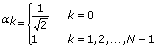 yが入力シーケンスDCT {X}を表すとすると、yの1次元逆DCTは以下のように定義されます。