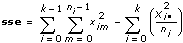 ximは、m = 0, 1, …, ni – 1、i = 0, 1, …, k– 1の場合でのi番目の水準におけるm番目の観測値とします。ni はi番目の水準での観測値の数、k は水準数です。