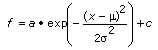 以下の式は、ガウスフィットアルゴリズムの結果のガウス曲線を示します。