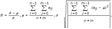 ここで、Bは2Dの出力シーケンスである正規化行列を表し、Aはの2Dの出力シーケンスであるn行、m列の行列を表し、aijはi番目の行のj番目の列にあるAの要素を表します。