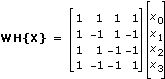 X = {x0, x1, x2, x3}のウォルシュ・アダマール変換は、以下の行列形式で示すことができます。