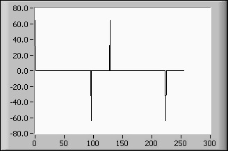 以下のダイアグラムは、長さ256、遅延32、幅64のパルスパターン信号のウォルシュ・アダマール変換を示します。