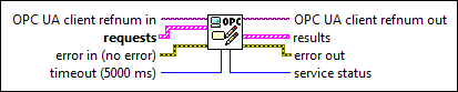 OPC UAクライアントrefnum出力は、OPC UAクライアントのリファレンスを返します。 | ||||||||||||||||||