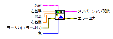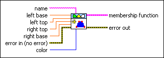 色には、メンバーシップ関数をファジーシステムデザイナで表示するときのメンバーシップ関数の色を返します。この入力には、カラーボックス定数を配線することができます。 |