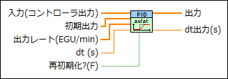 入力(コントローラ出力)には、PID VIからの現在の制御出力値を指定します。 |