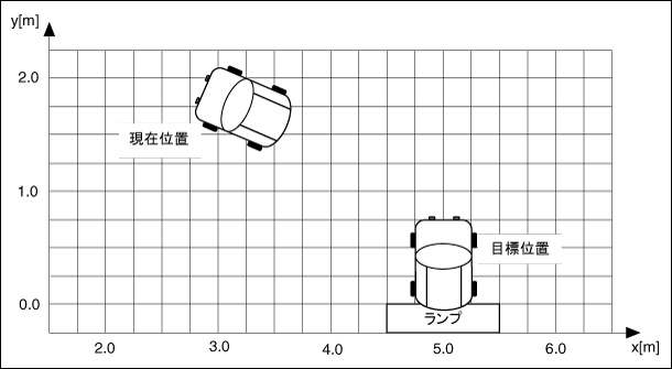 任意の開始地点から自動車を自動的に車庫に入れる例を考えてみましょう。運転手は、適切なステアリング角度を決めるために、目標地点からの距離や自動車の向きなどの自動車の現在の状況を常に評価しながら、自動車を制御することができます。以下の図はこの例を表しています。