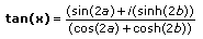tan(x)는 x와 동일한 숫자형을 가집니다. X가 x = a +bi형식일 때, 즉 x가 복소수일 때 다음 방정식은 tan(x)를 정의합니다:![]() |