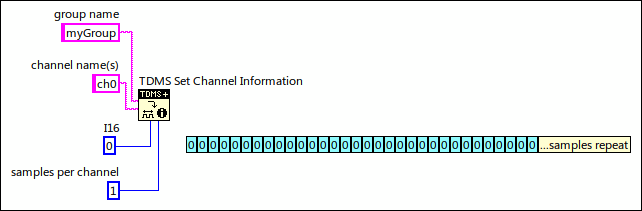지정된 .tdms 파일에 쓰고자 하는 원시 데이터의 채널 정보를 정의합니다. 채널 정보에는 데이터 레이아웃, 그룹 이름, 채널 이름, 데이터 타입, 샘플 개수 등이 포함됩니다.