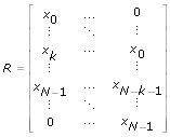 방법이 윈도우 이후인 경우, R은 다음과 같이 정의되는 크기 N x (k+1)의 행렬입니다.