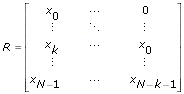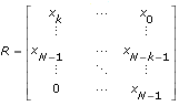 방법이 자기 상관인 경우, R은 다음과 같이 정의되는 크기 (N+k) x (k+1)의 행렬입니다.
